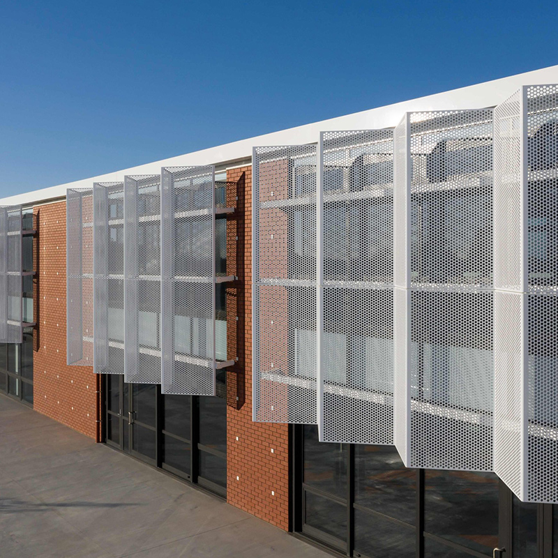 穿孔金屬板廣泛用于外部陽光控制系統(tǒng)。 為此,面板使人們享受舒適的工作環(huán)境而不會刺眼的陽光,并保持空氣流入建筑物并調(diào)節(jié)溫度。 此外,這種采用也為建筑外墻增添了活力。 穿孔金屬防曬霜的最佳選擇材料是鋁或鋁合金。 成品具有很高的強度重量比,即使在長期的陽光照射下也能抵抗老化。