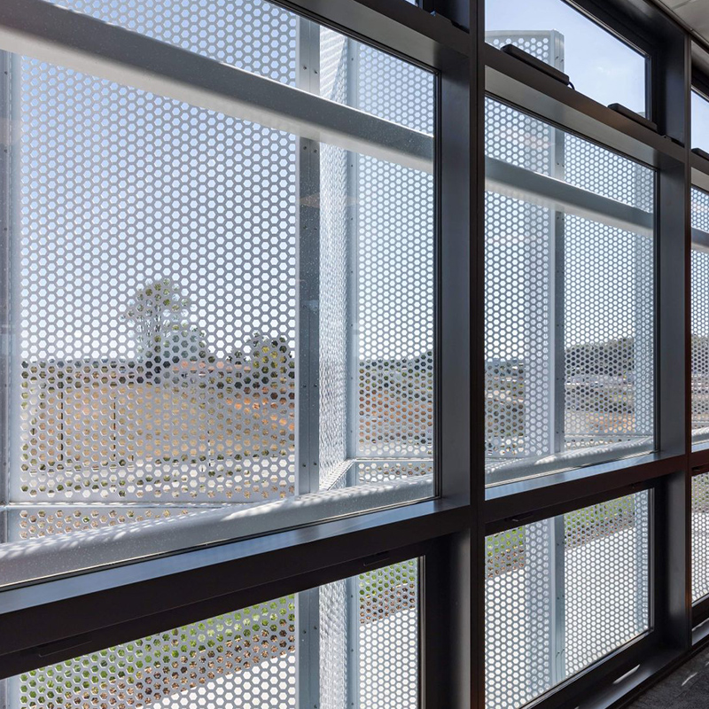 穿孔遮陽板旨在讓舒適的陽光照射到辦公室、商店和其他建筑物中,從而降低制冷和供暖成本。 億利達可以提供多種沖孔圖案和表面處理,以滿足您的項目風格。